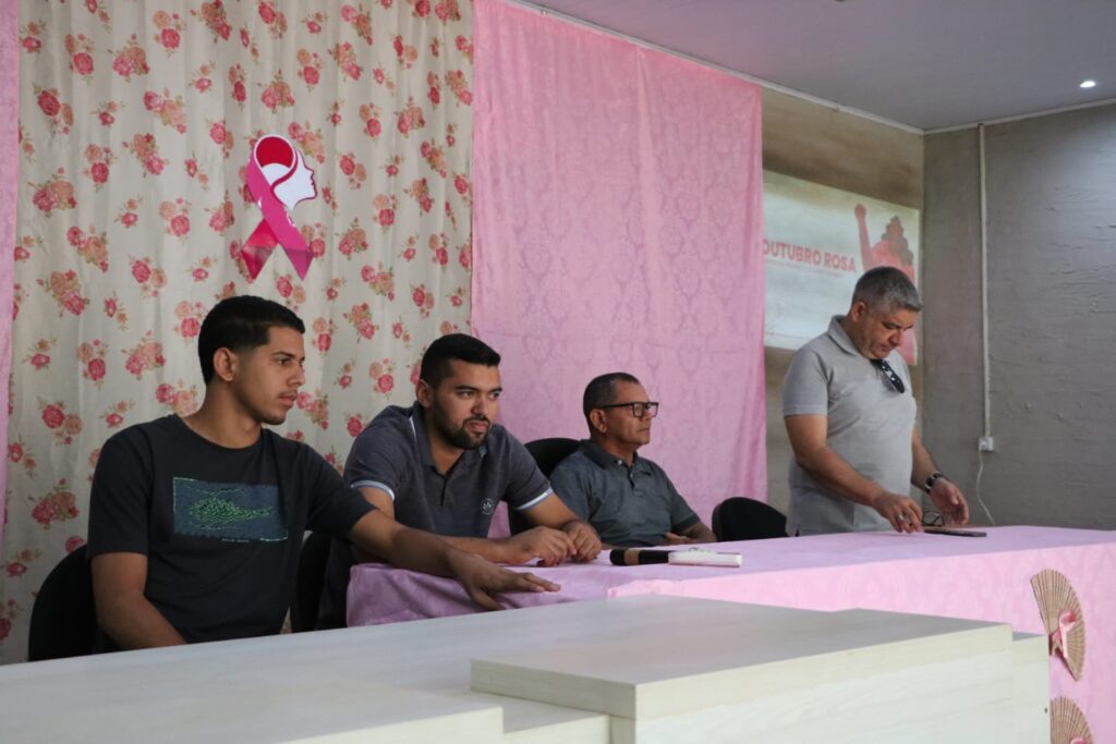 A Prefeitura de Lagoa do Sítio, por meio da Secretaria Municipal de Saúde, realizou ontem (29/10/2025), uma ação em alusão ao Outubro Rosa, mês de conscientização sobre a prevenção ao câncer de mama. O evento, que contou com a presença de várias mulheres do município e profissionais da saúde, foi realizado na Câmara de Vereadores de Lagoa do Sítio.