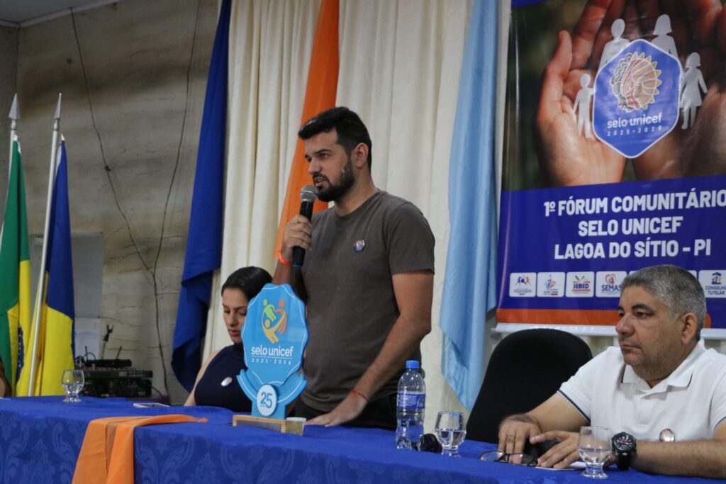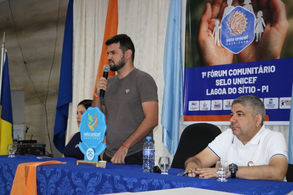 Lagoa do Sítio foi palco do 1° Fórum Municipal Selo UNICEF, realizado hoje, 5 de dezembro, na Câmara de Vereadores. O evento contou com a presença do prefeito Sávio Moura, do vice-prefeito Isauri, da presidente do Conselho Municipal dos Direitos da Criança e do Adolescente, Leila, da primeira-dama e secretária de assistência social, Joelma Luz, da secretária de Educação, Antônia Evaneide, do secretário de Saúde, Rodrigo Moura, do vereador Moura Matildes e representando o Conselho tutelar, Chagas Quaresma.